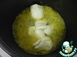 • Добавила сметану и около стакана воды. Закрыть мультиварку и около 5 минут подержать на выпечке. Отключить, перемешать