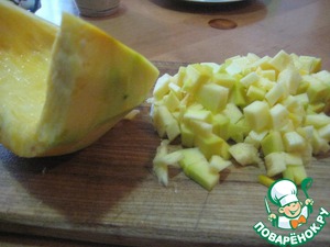Мне повезло - у меня была молодая маленькая тыковка с нежной и тонкой кожицей, которую было чистить очень приятно и запах ее сводил меня с ума. На 500г. вышло как-раз половинка тыквы. -