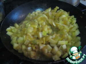 Доводим ее до состояния прозрачности. Не жарим. И в суп. -