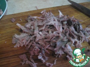 Очищаем от кости, разбираем на тонкие волокна, даже подрезаем ножом, чтобы длина была маленькой (так блендеру с ним будет легче справится). -
