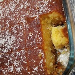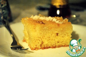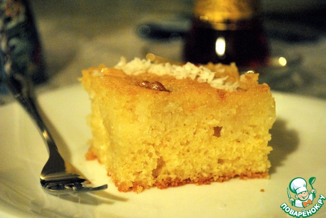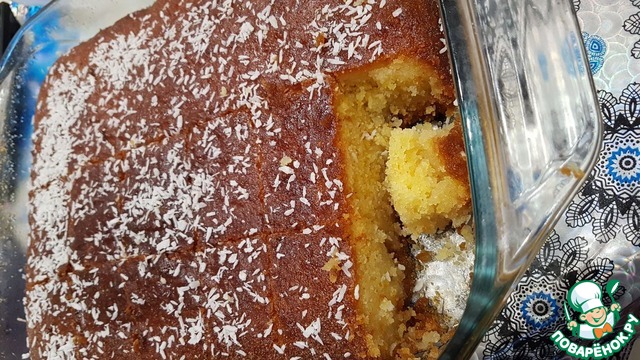 Прямо в форме режем кубиками, можно посыпать кокосовой стружкой) Подавать после полного охлаждения.