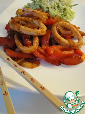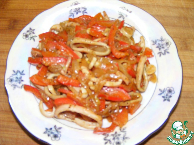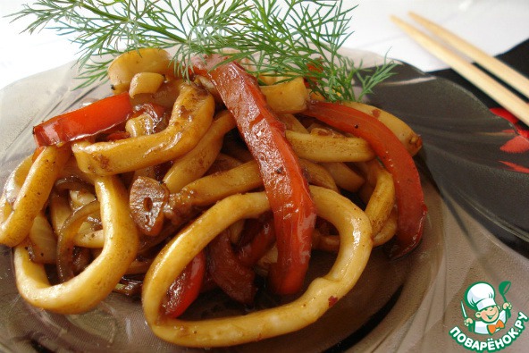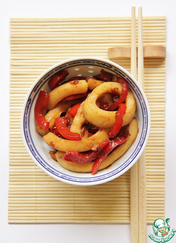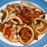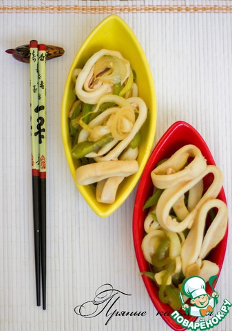 Я живу на Дальнем Востоке. Морепродукты всегда занимают главное место на нашем столе, Новый год, конечно, не исключение. Тем более, что будующий год - год Водяной Змеи, и она обожает морепродукты. Хочу предложить Вам блюдо из кальмаров прямо с Родины Восточного календаря - Китая.