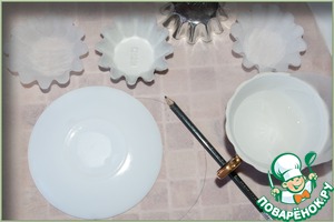 Пергамент складываем, обрисовываем и вырезаем кружочки. Затем их держим недолго в воде, чтобы стали мягкими, и вкладываем в железные формочки, разравнивая. Можно сложить стопочкой по 3-4 кружочка.