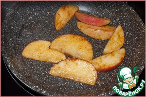 Яблоко порезать на дольки и обжарить в совсем небольшом количестве масла (только смазать сковороду) с красным острым перцем.