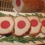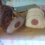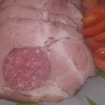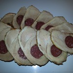 - Колбаса (сырокопченая, тонкая, по длине свиной корейки)