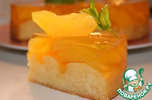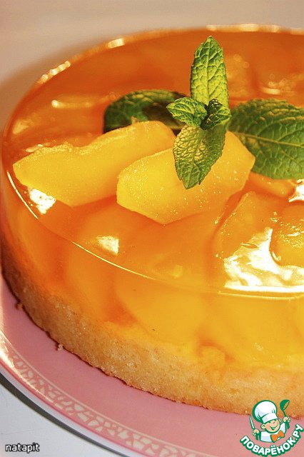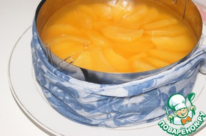 П. С. Постарайтесь, чтобы бока формы плотно прилегали к пирогу, это предохранит желе от вытекания. Я пользуюсь универсальным разъёмным кольцом, с помощью которого могу легко регулировать нужный мне объём, дном мне служит лист фольги, которым я плотно обворачиваю кольцо. Удачи!