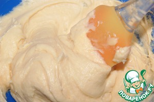 Взбить масло с сахаром (80 г) добела, не переставая взбивать, ввести по одному яйца.