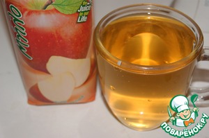 • Смешать яблочный сок с мандариновым сиропом 50 мл (он остается после варки яблок) и хорошо нагреть, но не кипятить!