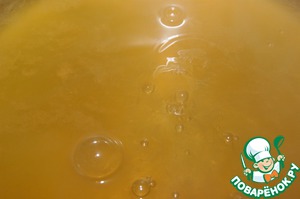 Отжать набухший желатин и растворить его в яблочном соке. Остудить до комнатной температуры. -
