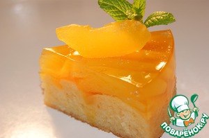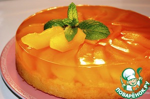 • Полить верх пирога 5-6 ложками желе и поставить в холодильник, дать застыть.