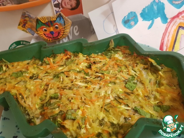 Сытное вкусное блюдо, своего рода запеканка. Идея рецепта взята из какого-то номера журнала "Школа гастронома"