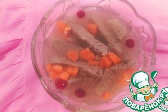 Для приготовления заливных блюд из овощей берут морковь, репу, цветную капусту, спаржу, зеленый горошек и пр. К овощам можно добавлять фрукты (яблоки, груши, персики и др.). Бульон или отвар, полученный при варке рыбы, мяса или овощей, предназначенных для заливки, идет па приготовление желе. Количество желатины, которое необходимо положить в бульон или отвар для получения желе, зависит от крепости бульона и отвара. Так, например, в бульон из-под судака, сваренного с головой и кожей, достаточно добавить 1-2 г желатины на 1 стакан. На то же количество бульона из кур или цыплят нужно положить 4-5 г. Из овощного отвара хорошее желе получится при добавлении 6 - 7 г желатины на 1 стакан желе. Замачивают желатину в холодной воде, взятой в пятикратном количестве по отношению к весу желатины. Бульон или отвар следует прокипятить на легком огне в течение 3-5 минут, затем положить предварительно замоченную и отжатую желатину и помешивать бульон до закипания и полного растворения желатины. После этого бульон или отвар процедить через салфетку в другую кастрюлю или миску, дать слегка остыть и залить подготовленные продукты (рыбу, мясо или овощи). Чтобы получить желе более прозрачное, нужно взять на каждые 4-5 стаканов бульона 1 сырой яичный белок, взбить в миске веничком или вилкой, влить стакан охлажденного бульона или отвара, добавить столовую ложку уксуса или лимонного сока, перемешать и влить в кипящий бульон или отвар. Кастрюлю с бульоном накрыть крышкой, поставить на слабый огонь; как только закипит, кастрюлю снять с огня и дать бульону отстояться в течение 15-20 минут, затем осторожно, не взбалтывая, процедить через салфетку.
