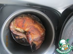Как видите утка лежит не ровно, места естественно не хватило, но мне не так уж и важен этот момент. Думаю найдутся и те кому это не понравится, тогда лучше делать утку в духовке. Но это уже другой рецепт.