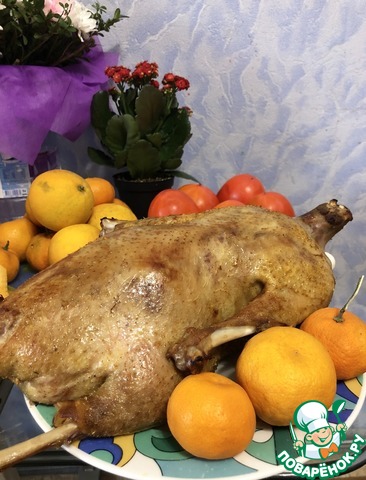 Хорошо промазать полученной кашицей всего гуся (изнутри и снаружи) и оставить мариноваться на сутки в прохладном месте.