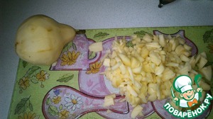 Готовим сладкую начинку. Грушу, яблоко почистить от кожицы, вырезать семена и мелко порезать.