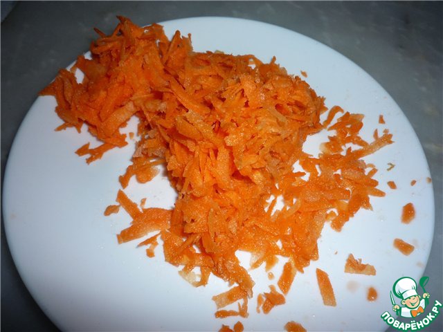 Помыть и очистить крупную морковь, натереть на крупной терке.
