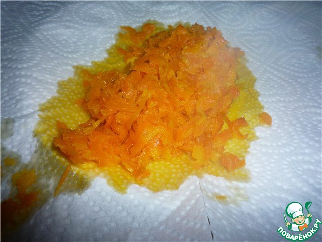 Положить на бумажное полотенце (салфетку), чтобы впиталось лишнее масло.