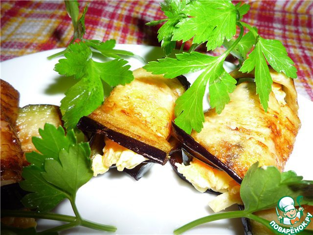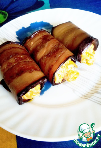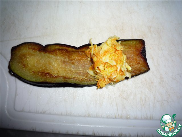 Рецепт «Баклажанные рулетики с сыром и морковью»:
