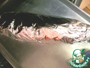 Плотно заворачиваем и отправляем в духовку, разогретую до 200 градусов, примерно на час.