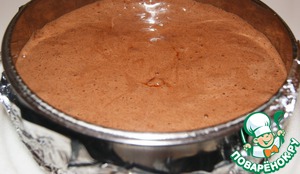 Вылить в форму или кольцо 20 см. в диаметре, если у вас кольцо, как и у меня, оберните его фольгой и у вас получится донышко.