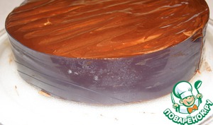 Вылить глазурь на центр торта и распределить с помощью шпателя по всей поверхности. Дать шоколаду застыть в холодильнике и аккуратно освободить от кольца и ленты. -