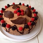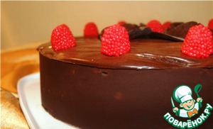 Я пекла для именинницы, которая просто обожает шоколад, поэтому и одела его соответственно, украсив малиновыми желейными конфетками.