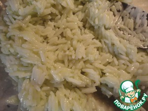 Рис отвариваем в подсоленой воде, добавляем васаби и рисовый уксус, хорошо перемешиваем.