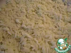 Выкладываем рис на плоскую тарелку.
