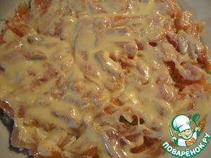 Смазываем рыбу тонким слоем майонеза.