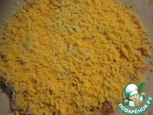 Следующий слой - тертые на мелкой терке вареные желтки.