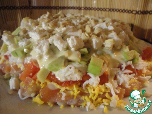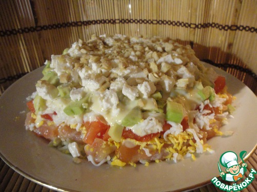 Ингредиенты для «Слоеный салат с красной рыбой»: