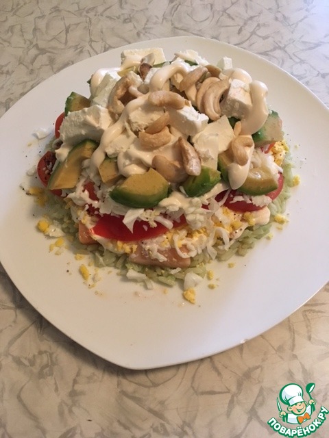 Слоеный салат с красной рыбой
