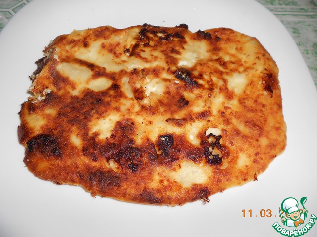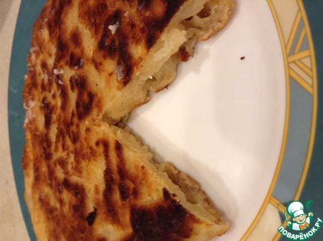 Начинка: творог смешать с укропом и капелькой соли. Также в начинку можно положить и мясо и ветчину.
