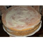 Перевернуть застывший торт на блюдо, можно смазать сверху подогретым абрикосовым или персиковым джемом.