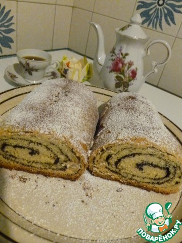 Приготовить тесто так же, как для булочек - "шанежек". Отдельно приготовить мак; положить его в кастрюлю, залить кипятком, накрыть крышкой и дать постоять на столе 30-40 минут. Затем слить всю воду, слегка отжать мак и растереть его в ступке или в миске, прибавляя постепенно мед, а потом и сахар, чтобы получилась масса, напоминающая густое повидло. Готовое тесто раскатать толщиной около 1 см, положить на тесто слой подготовленного мака, разровнять и свернуть тесто в трубку, после чего переложить рулет на лист, слегка смазанный маслом, и поставить в теплое место для подъема; затем смазать рулет яйцом и поставить в жаркий духовой шкаф на 20-30 минут для выпечки. В тесто для аромата можно положить ванилин или лимонную цедру. При подаче на стол рулет нарезать на куски и посыпать сахарной пудрой. На 1 кг муки -1,5 стакана молока, 5 яиц, 1 стакан сахара, 100-125 г масла или маргарина, 3/4 чайной ложки соли, 30 г дрожжей. Для начинки на 300 г мака - 150 г меда и ½ стакана сахара.