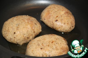 Включить духовку на 190 градусов. В глубокой сковороде разогреть оливковое масло и выложить котлеты швом вниз.