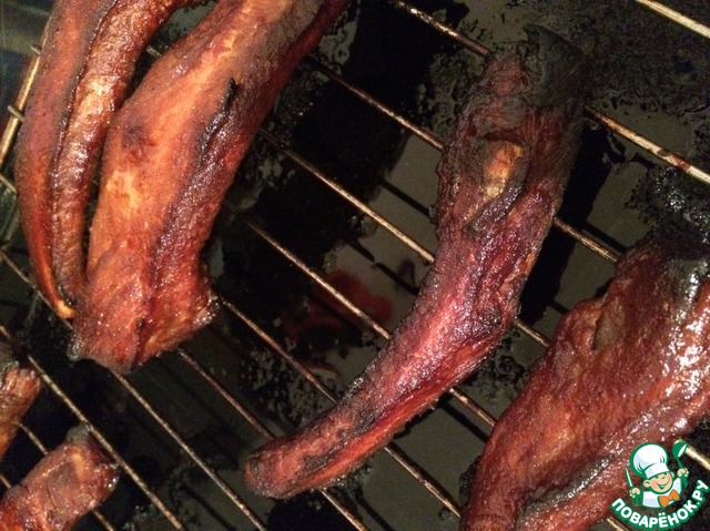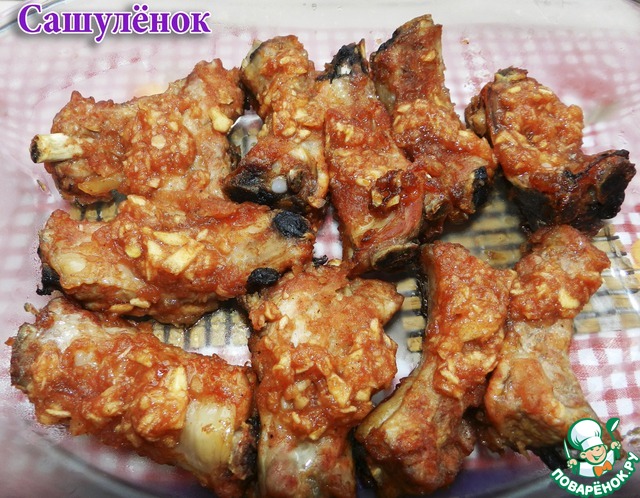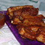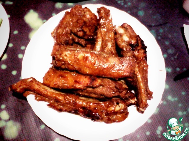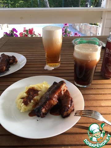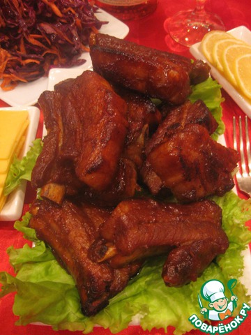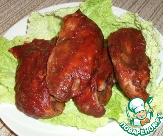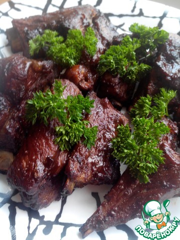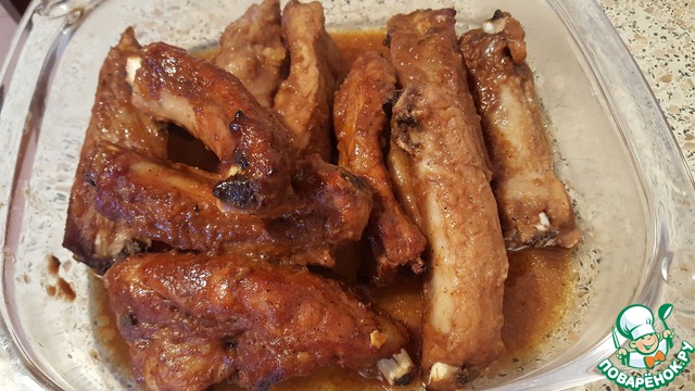 В описании к рецепту было сказано, что этот ароматный сладкий соус-маринад для рёбрышек-барбекю неотличим от соуса, который подают в одном известном ресторане в Монреале, у которого выстраивались очереди на улице в любой день недели. Как человек любопытный, я поспешила приготовить этот рецепт и... очень пожалела. Пожалела о том, что приготовила так мало ребрышек. Летом, в сезон барбекю, я его обязательно повторю. Ну а пока... готовим в духовке. Это тоже очень вкусно!