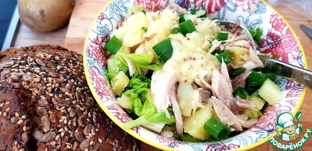 Рецепт «Салат из скумбрии с горчичной заправкой»: