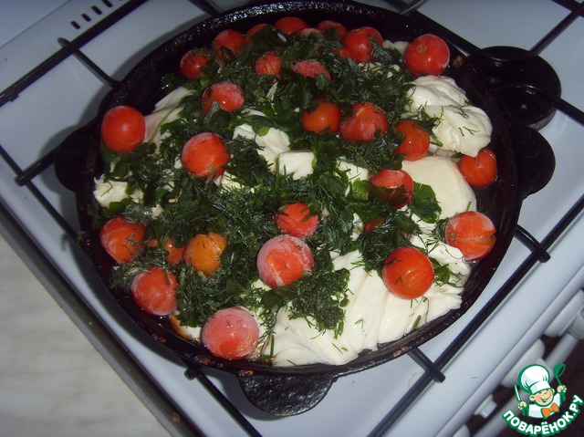Залить кипятком, посолить, поперчить. Закрыть плотно крышкой и поставить на медленный огонь тушиться примерно на час