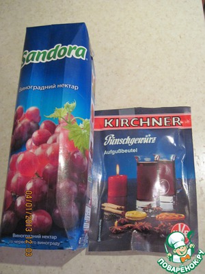 Для начала приготовим глинтвейн или пунш. Я ожидала гостей с детьми, поэтому использовала виноградный сок вместо вина. Можно взять красное вино или виноградный сок пополам с вином. У меня была готовая смесь для пунша (Нинулечка barska, спасибо тебе огромное!!!), куда входили пряности (см ингредиенты) и черный чай.