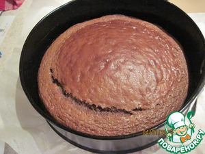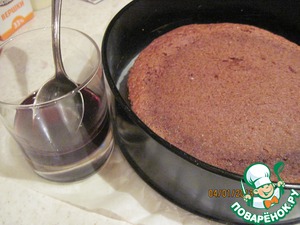 Укладываем бисквит в разъемную форму и, хотя он и получается влажный, я все равно его слегка пропитываю, именно для этого мы и оставляли немножко глинтвейна. Можно добавить в пропитку немножко апельсинового ликера, например Куантро, получится очень вкусно!!! Не будь в доме детей, сделала бы именно так!
