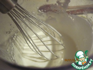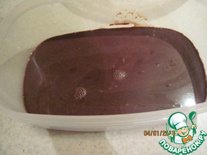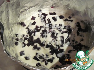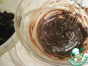 В растопленный шоколад понемножку, начиная с чайной ложки, добавляем оставшееся желе, интенсивно мешаем чтоб масса не расслоилась, удобнее всего это делать на водяной бане