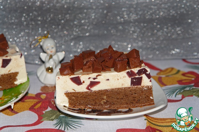 Дорогие поварята, от всей души хочу поздравить вас с Новым Годом и наступающим Рождеством!!! Всего вам самого доброго, светлого и хорошего!!! Хочу поделиться рецептом очень-очень вкусного, легкого и интересного тортика. На легком, влажном шоколадном бисквите сливочное облачко застывшего крема, в котором встречаются капельки пряного глинтвейна и все это украшено потрясающе вкусным и тающем во рту шоколадным желе. Поверьте, очень вкусно!!! Тортик легкий, но в то же время шоколадный и сливочный, вкус пряностей ненавязчивый и очень нежный, для зимнего вечера в хорошей компании - самое то!!!