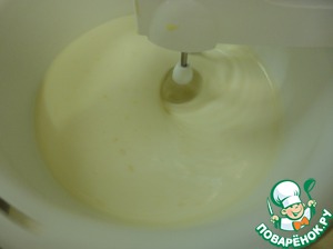 Добавить цедру и апельсиновый сок. Взбивать 15 минут, до белого цвета и загустения. Масса увеличится в объёме. Масса должна держать форму. Желательно взбивать в прохладном помещении.