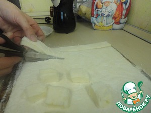 Снимаем фольгу и нарезаем на квадратики (или любая другая форма, по вашему желанию) ножницами, смоченными в раст. масле.