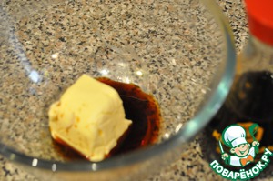 В размягченное масло (70 граммов) волью соевый соус и добавлю молотый имбирь.