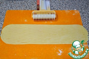 Масло (200 граммов) порублю с солью и мукой, добавлю сметану, разрыхлитель и замешу мягкое эластичное тесто. Положу в холодильник на 30 минут.