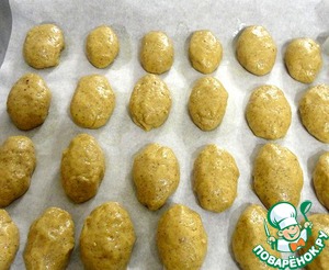 Полученное печенье укладываем на противень, застеленный пекарской бумагой.