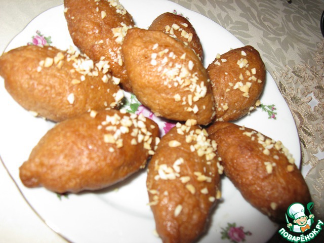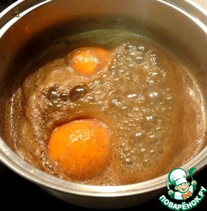 В это время готовим сироп: в воде растворить мед и сахар (я всегда добавляю кожуру от апельсина). С момента закипания убавить огонь, варить 20 минут.