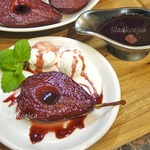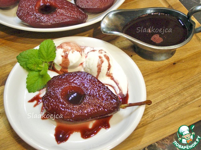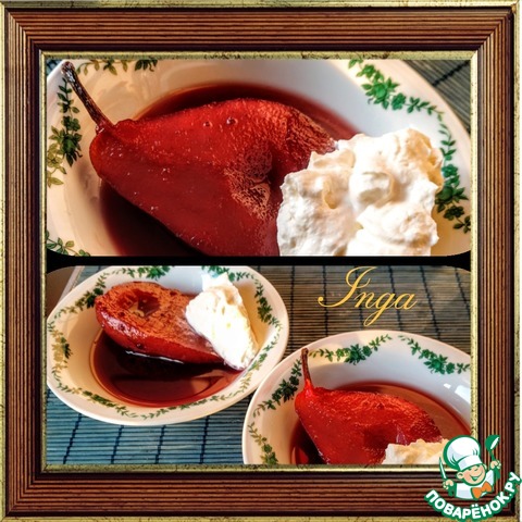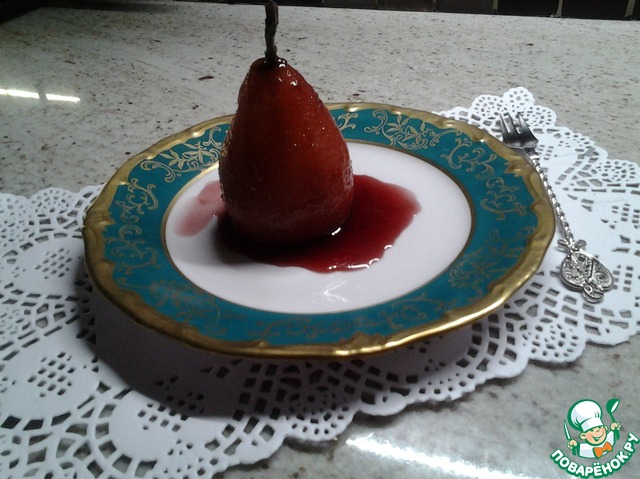 Груши ставим в порционные тарелки, поливаем сиропом и можно подавать. Приятного аппетита!